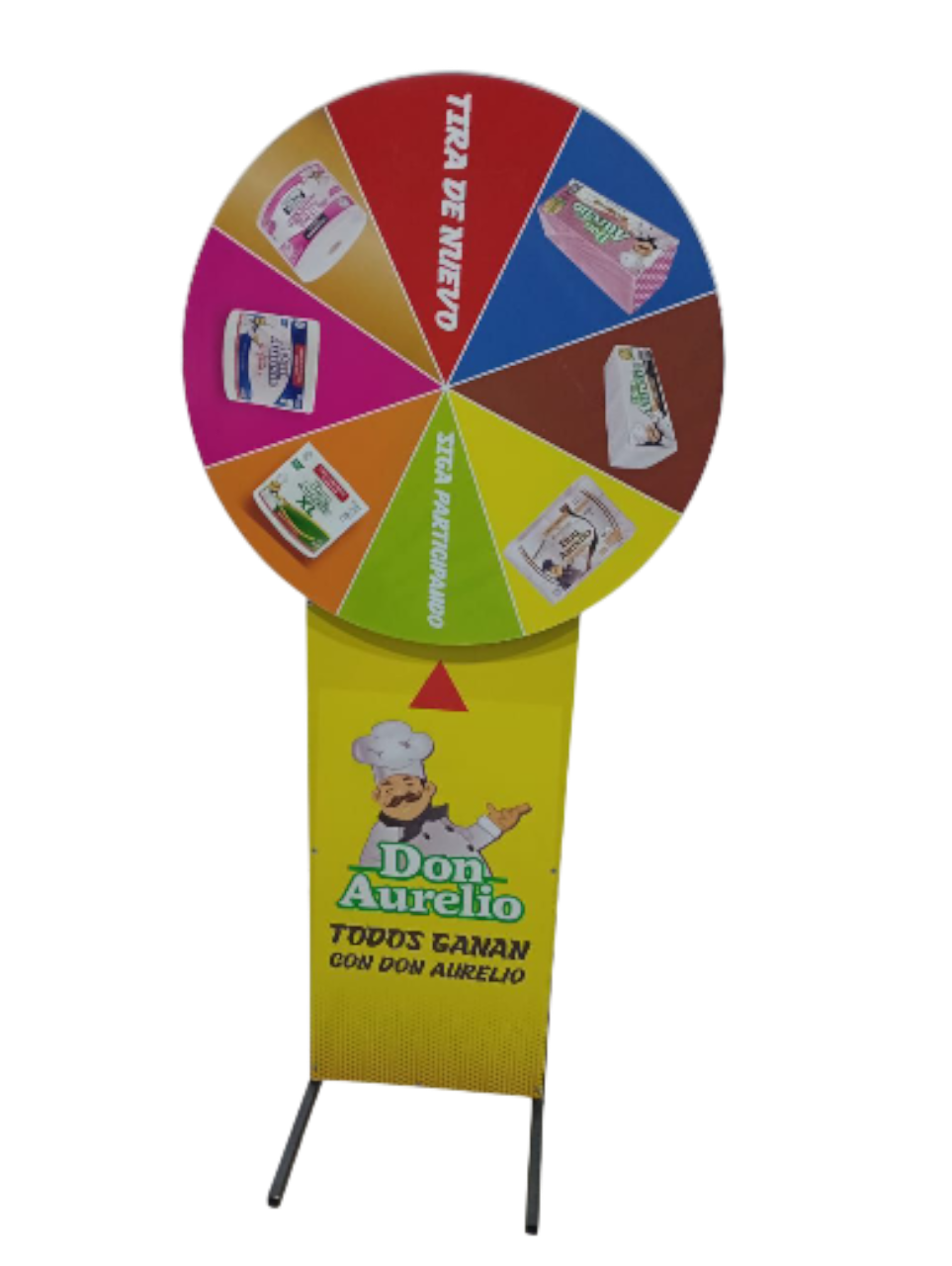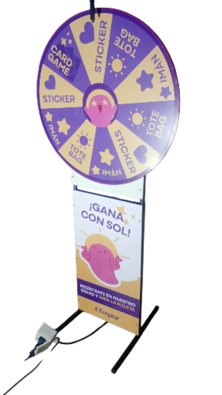 Impacto Visual: Sus colores vibrantes y el sonido al girar aseguran que tu stand sea el centro de atención.